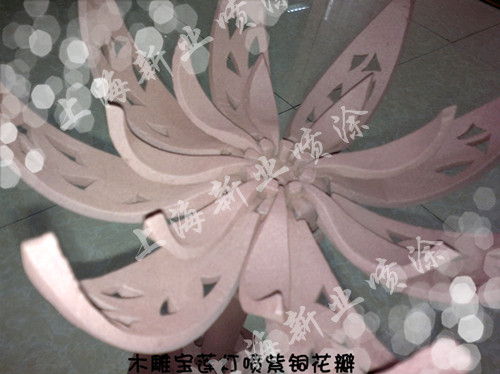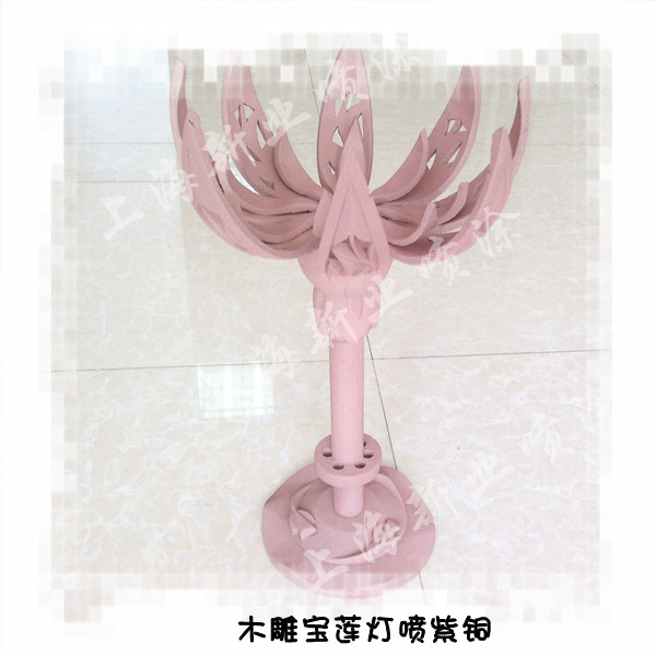他希望能在木雕“寶蓮燈”燈具表面噴涂紫銅等金屬材料,以便讓燈具看上去更加美觀,富有金屬感,帶有一種低調的奢華。